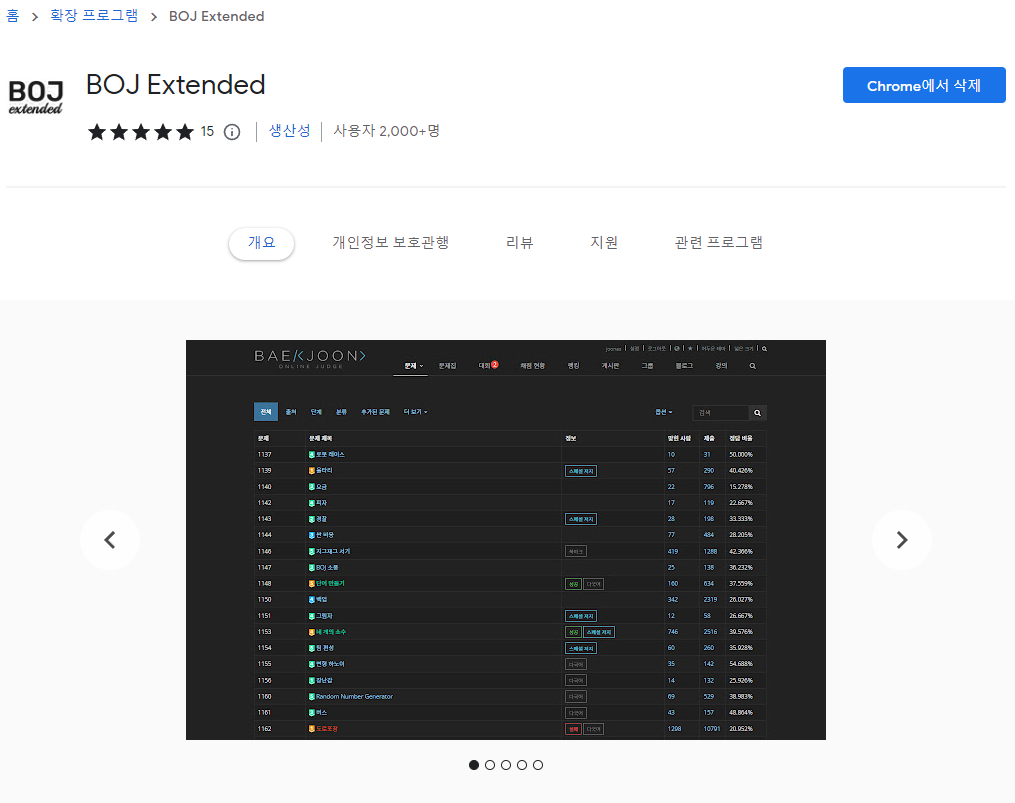 baekjoon은 크롬에 최적화 되어있고 또한 유용한 확장 프로그램을 chrome 웹 스토어 (링크)에서 받아 추가할 수 있다.